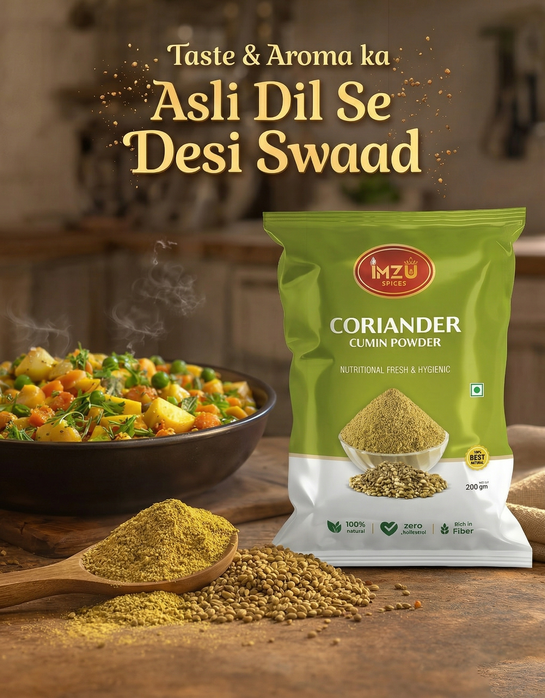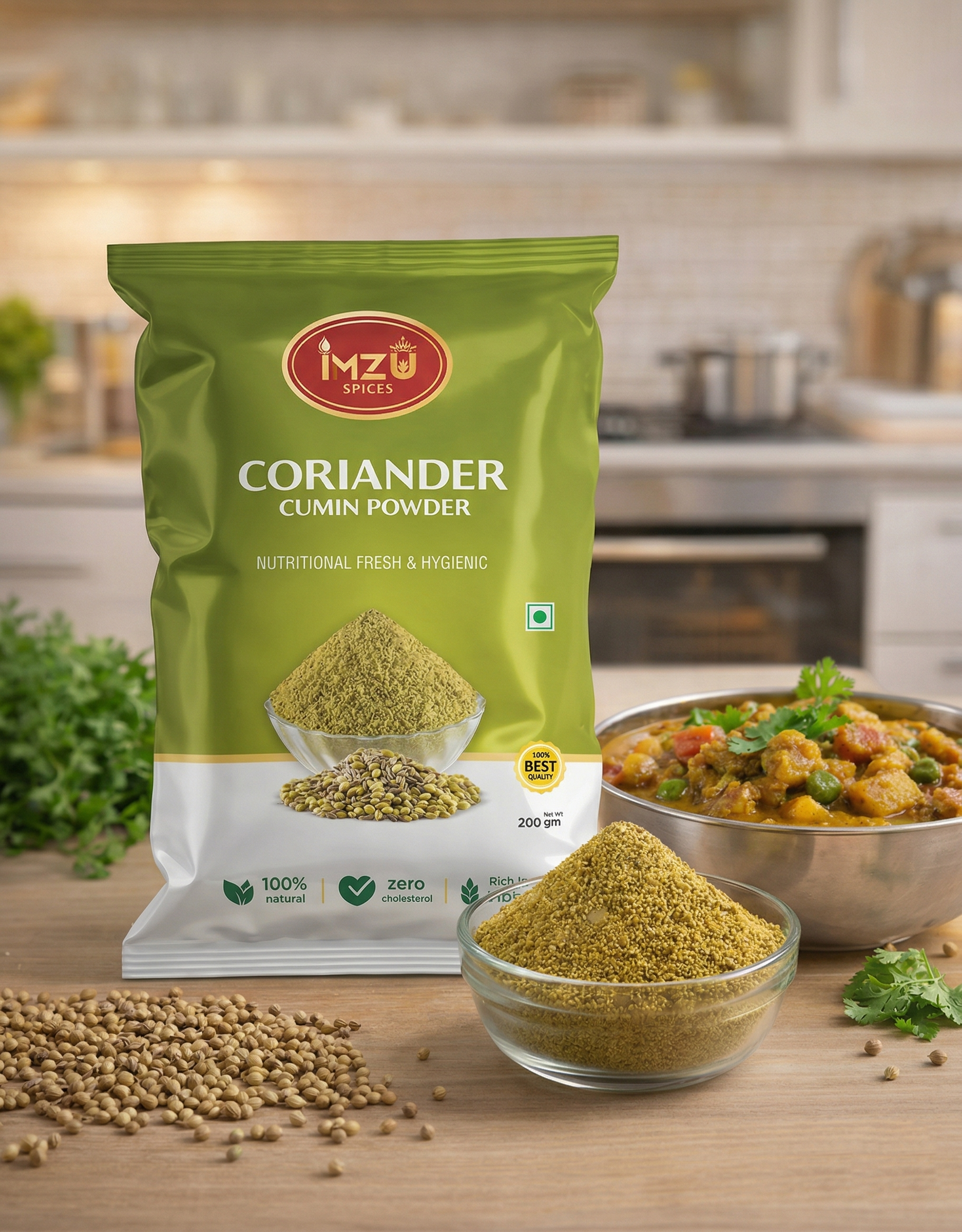 Our natural spices India range focuses on purity, hygiene, and freshness. IMZU coriander cumin powder contains no artificial color, no chemicals, and no preservatives, making it suitable for healthy daily cooking masala needs.